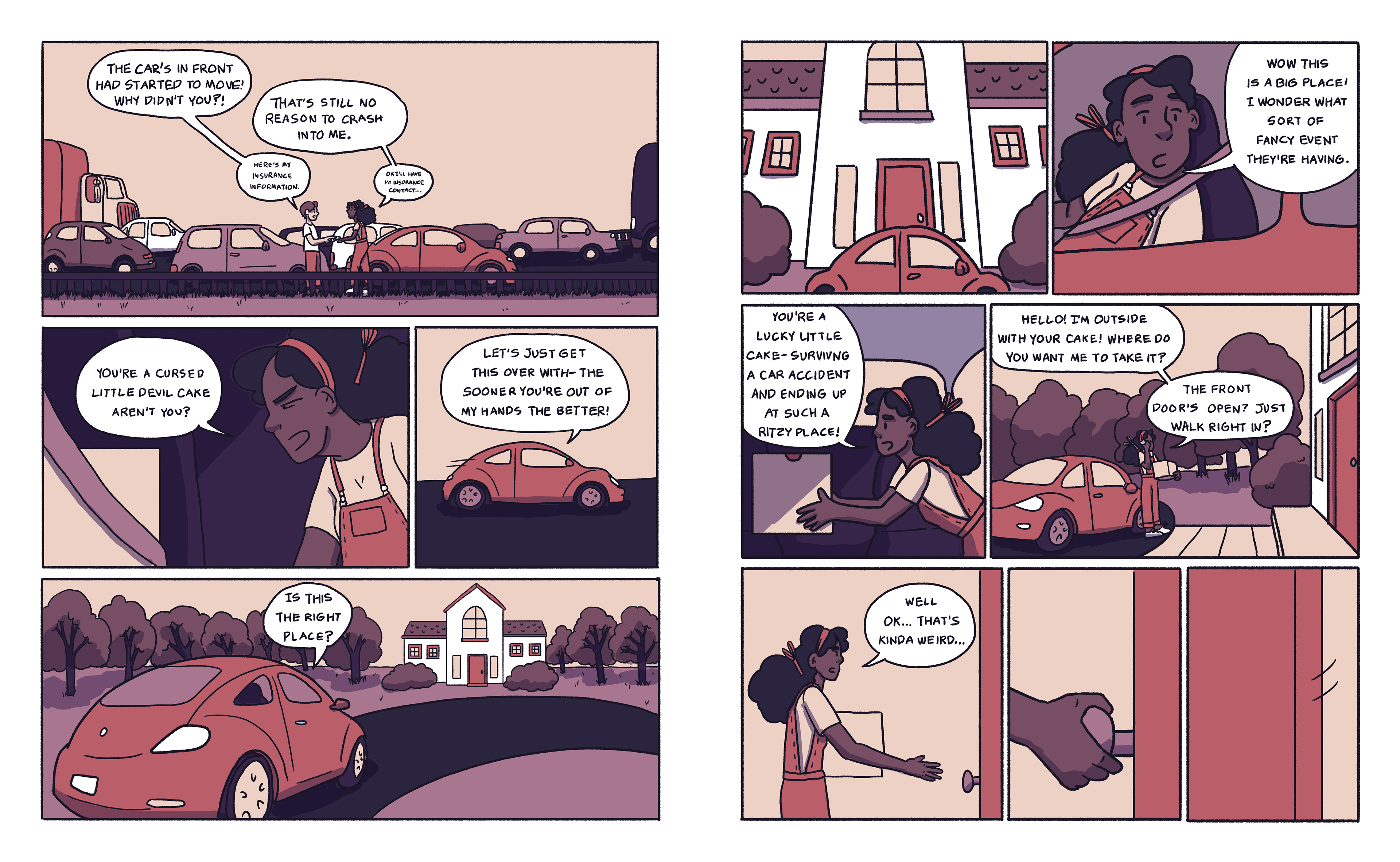 One more cake is a short and sweet comic about a delivery woman who delivers a cake to a very special party. It was made for the CCS Out For Delivery Anthology.