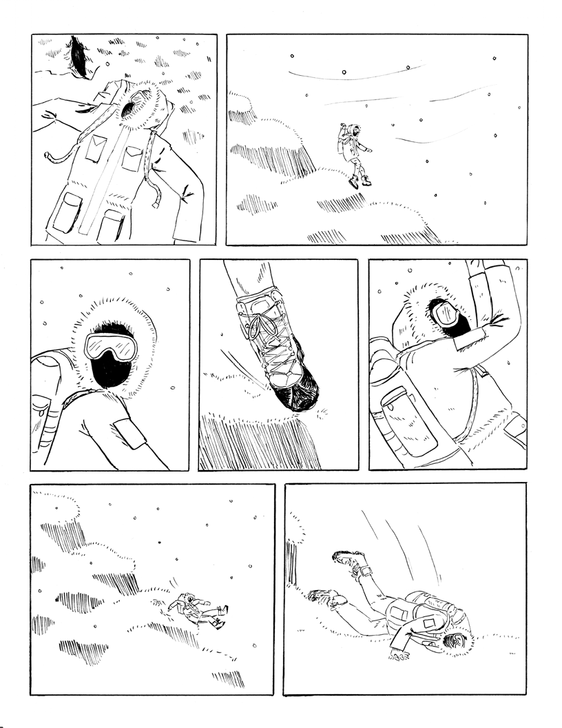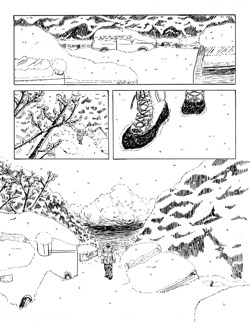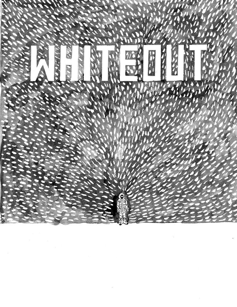Whiteout is a 12-page comic I made in 2020. It's a silent comic about a man wandering a winter apocalypse in search of other survivors.